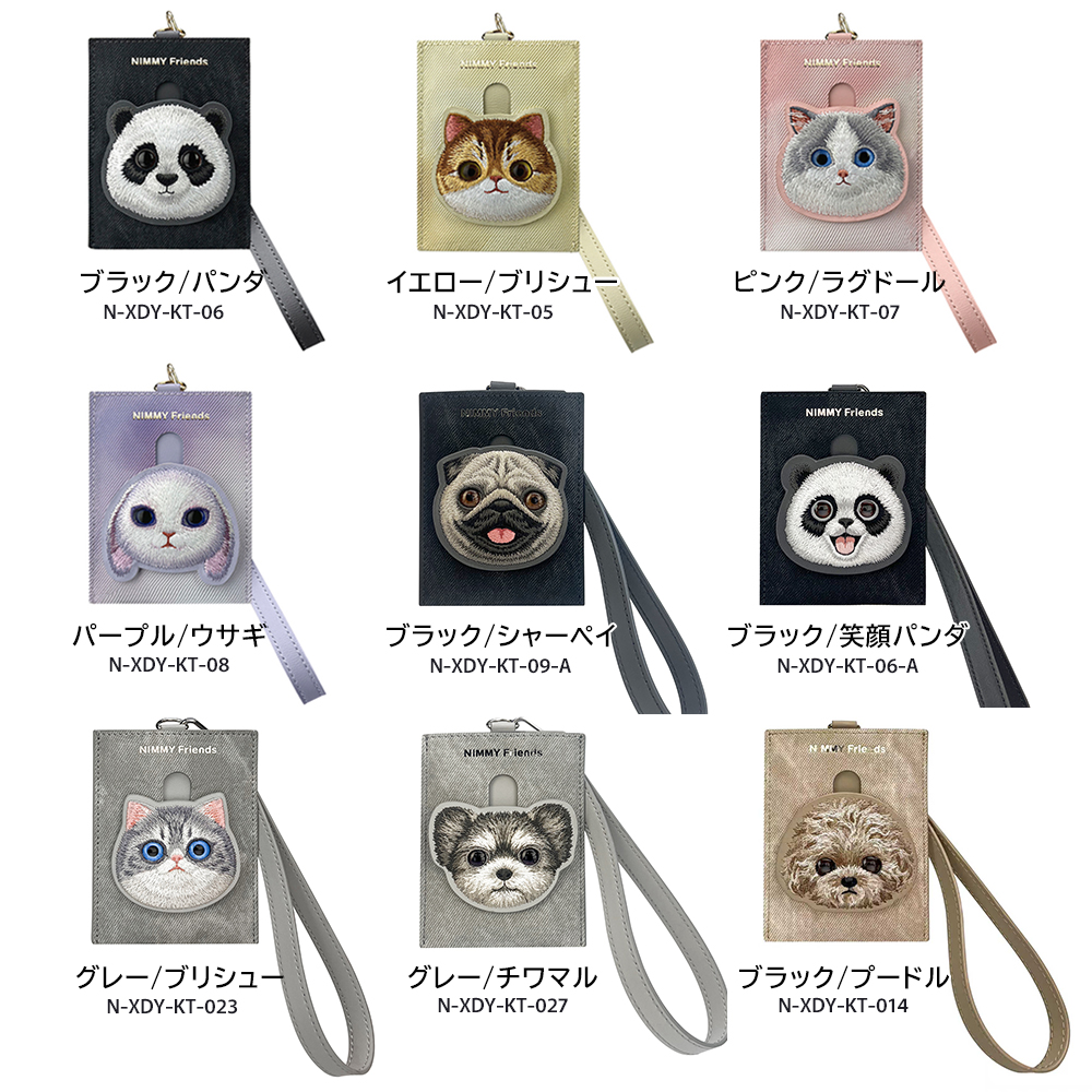 カラー:9色展開:ブラック/パンダ、イエロー/ブリシュー、パープル/ウサギ、ピンク/ラグドール、ブラック/プードル、グレー/チワマル、グレー/ブリシュー、ブラック/シャーペイ、ブラック/笑顔パンダ