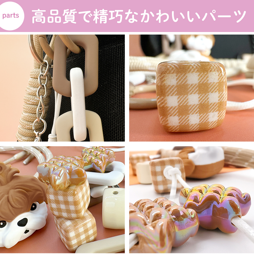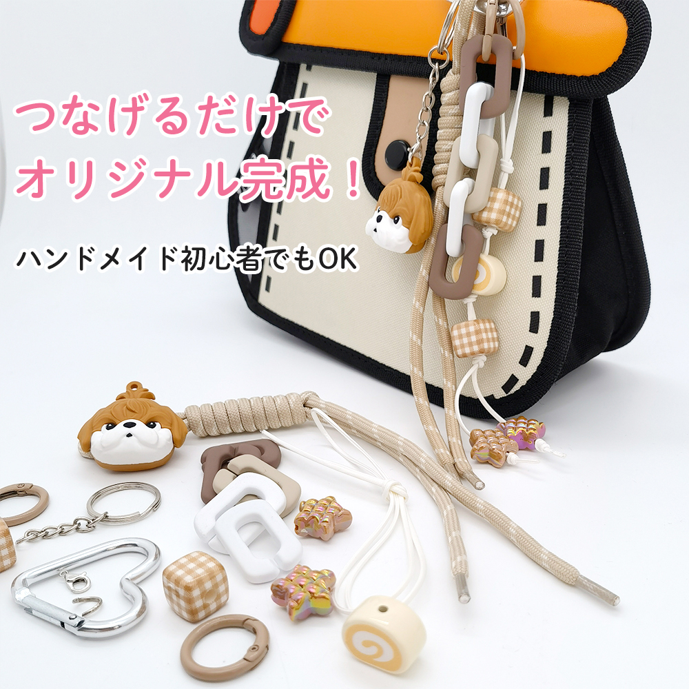 ハニービーズや丸玉ビーズなどを組み合わせて、自分だけのオリジナルアクセサリーを作成可能。バッグや鍵に付けておしゃれに飾れるだけでなく、子供の創造力や手先の器用さを育むのにもぴったりです。